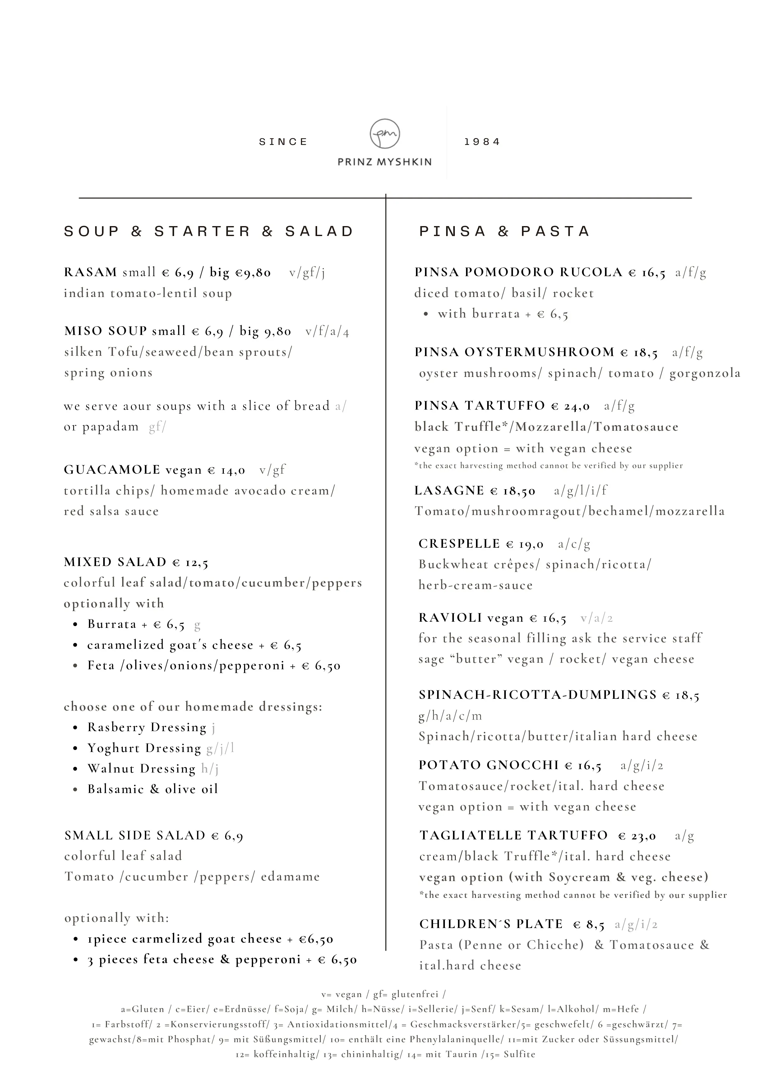 hausgemachte Buchweizen-Crêpes, mit einer Füllung aus Spinat, Ricotta und frisch geriebenem Parmesan. In einer Kräuter-Rahm-Sauce im Ofen überbacken 16,50