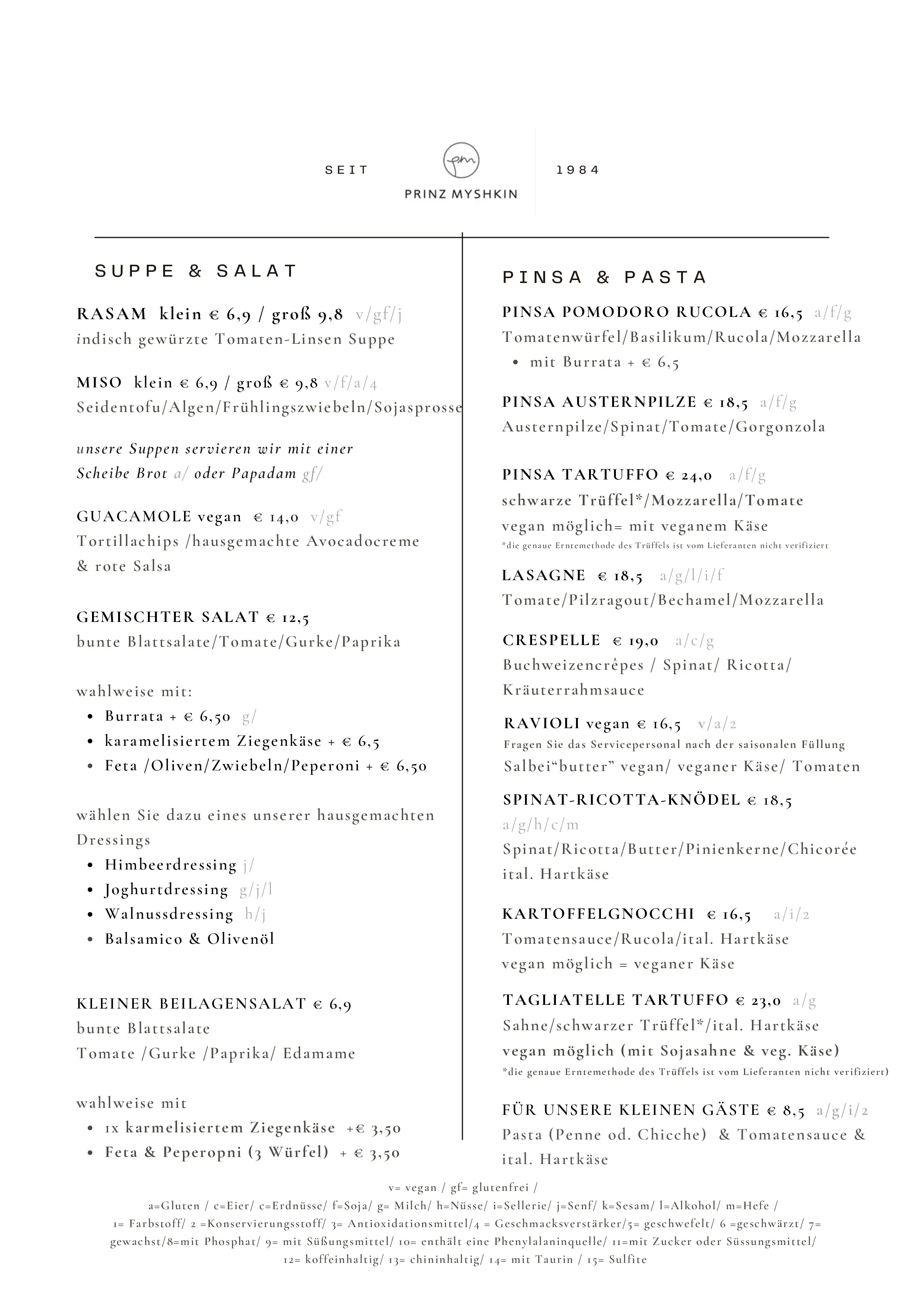 mit geriebenem Parmesan, gerösteten Pinienkernen und zerlassener Salbeibutter verfeinert 15,20