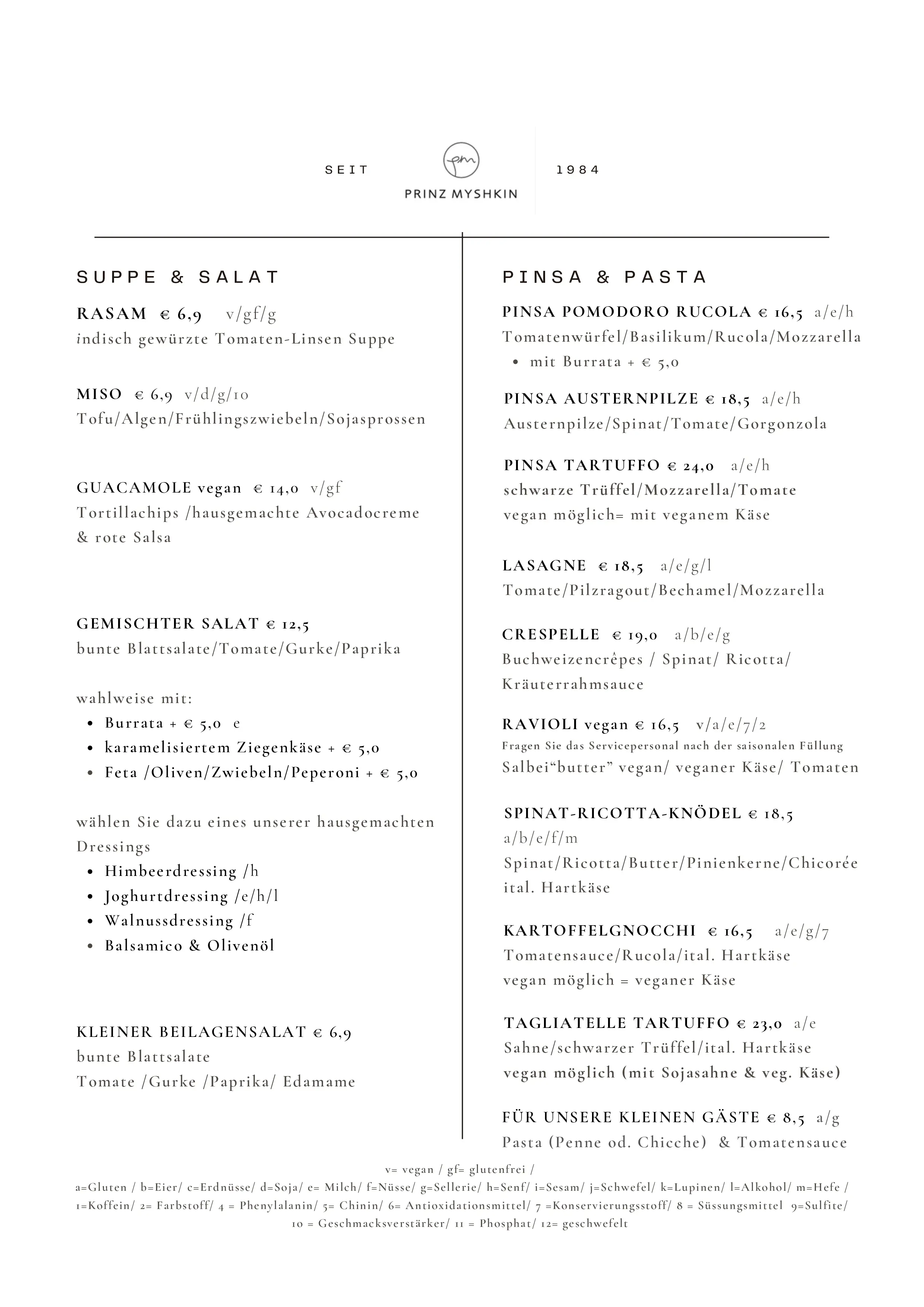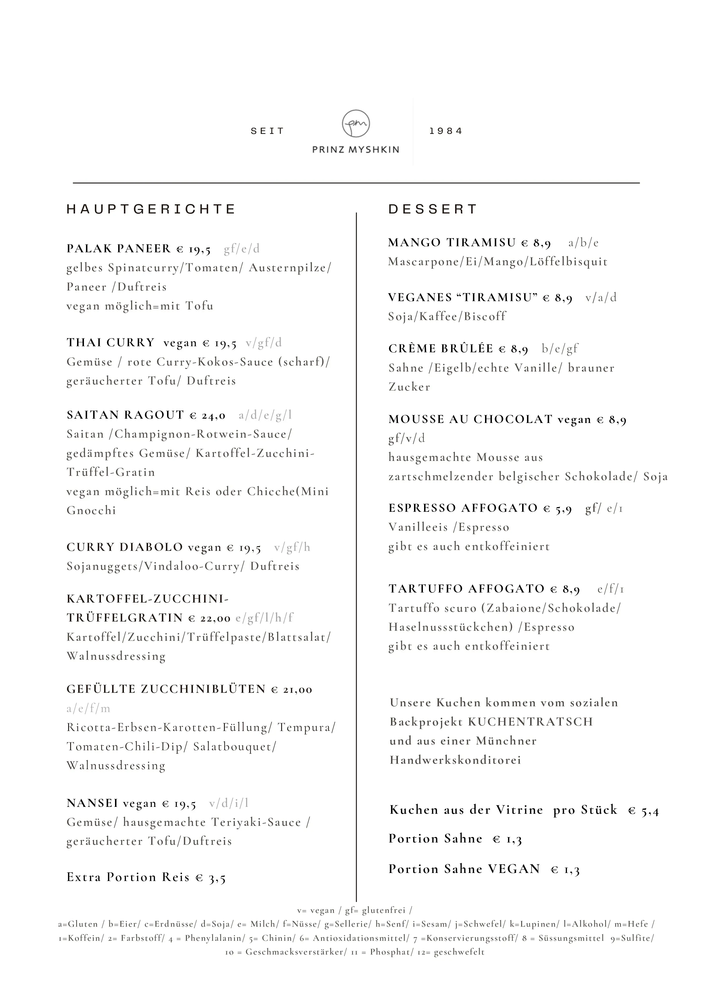 with carrots, cauliflower and oyster mushroom and cream sauce. Choose from white or brown Basmiti rice or Spätzle, a typical noodle specialty from southern Germany 20,90